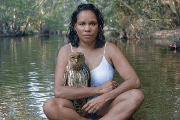 For Hobson, the photo captures a morning on her Country, a story about the way she lives. “It was one of those rare moments. That day I was at the river with my family, and we saw the owl on the ground. I think it had fallen from the tree, it looked a bit disoriented, so I sat with the owl quietly while it regained its bearings and then it flew off again.